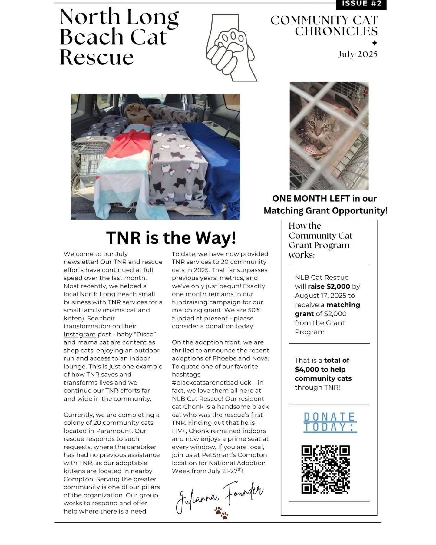 NLB Cat Rescue currently operates in Long Beach and immediately surrounding areas.