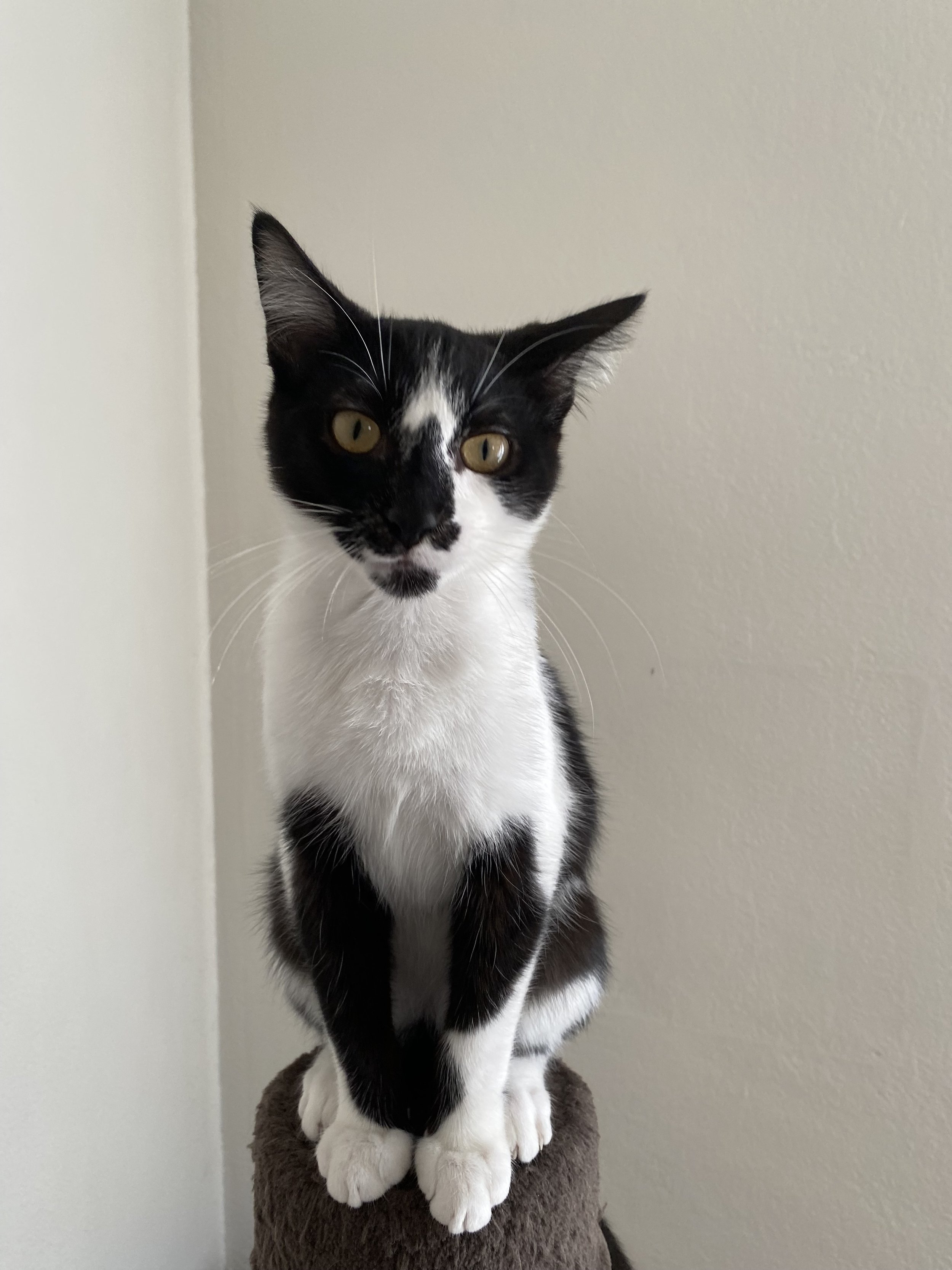 Found outdoors at just about two months old, Kiko is a fully litter box trained, 7-8 month kitten ready for his forever home. Fostered with his sister from the same litter, Kiko loves to play and climb the cat tower. This sweet boy simply enjoys the company of other cats and humans. His favorite treats come in squeeze tube form - Churru, Tiki, we’re not picky! Shy at first, once Kiko warms up he is a playful addition to any family.